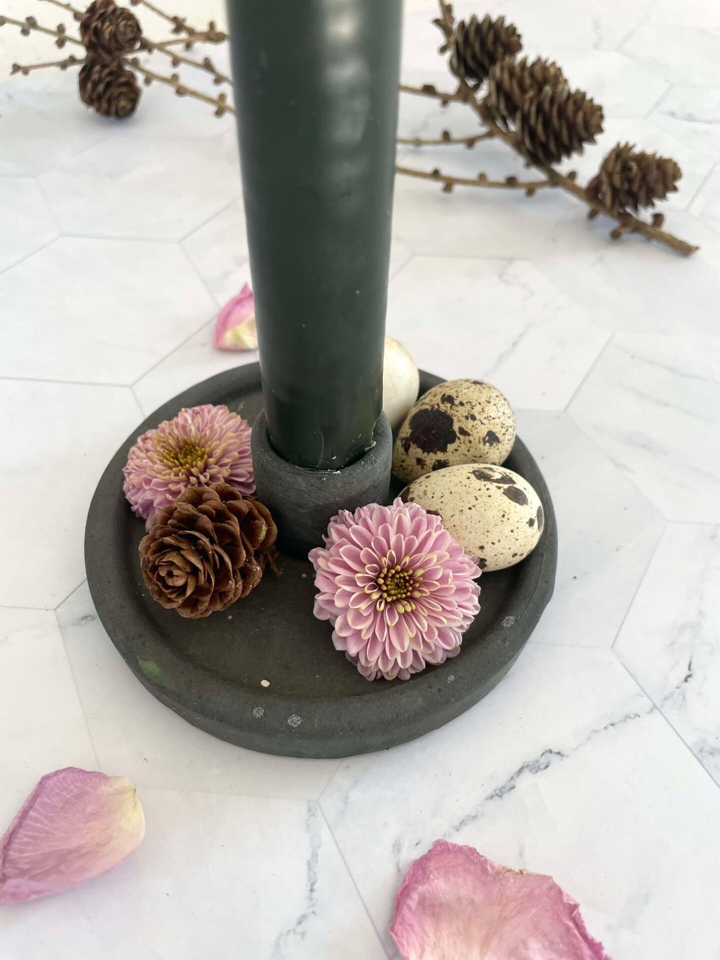 Rigtig fin lysestage i keramik – lysestagen har et rustik look og med smuk fod hvor du kan pynte på.