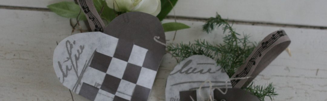 Flettede julehjerter hører julen til, jeg kan tydeligt huske de hang på mine foreældres juletræ eller på en troldegren i stuen, men jeg har faktisk ikke selv haft flettede julehjerter hængende i mit julehjem og det er da en fejl, så nu er jeg gået i gang med saks og papir.