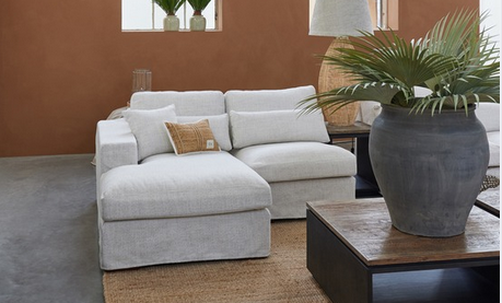Denne sofa har en lidt mere lige model med et medium dybt sæde og diverse løse hynder. Det, der gør denne sofa speciel, er det løse betræk, som næsten når gulvet. Det løse betræk giver sofaen et noget afslappet, moderne-landligt udtryk. Fås i forskellige designs og stoffer.